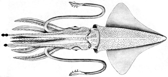 Figure. Ventral view of Abraliopsis gilchristi.Drawing from Voss (1967, Pl. Ia).