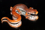 The Four-Toed Salamander is a small plethodontid with a widespread, fragmented distribution ranging from southern Canada southward to the Gulf of Mexico and westward to Oklahoma, Missouri, and Wisconsin (Petranka, 1998). Adults of this species are terrestrial and inhabit forested areas with fishless swamps or vernal pools that serve as breeding areas. Females often nest in moss clumps near the water’s edge, and may utilize communal nests. Joint nests in Michigan have been recorded containing over 1,000 eggs from 30-35 females (Blanchard, 1934). Unlike most other plethodontids which are capable of caudal autotomy only when grabbed by a predator, Hemidactylium scutatum may voluntarily autotomize its tail (Petranka, 1998).