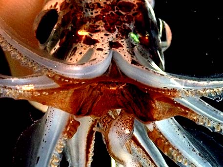 Figure. The peculiar fusion of the buccal membrane to the dorsal arms in pyroteuthids is seen in this partial oral view of Pyroteuthis addolux.