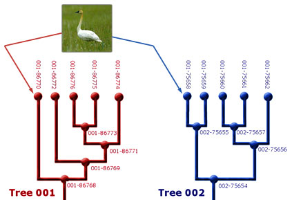 Looking further into the future, development efforts will focus on adapting the ToL information architecture so that ToL content can be displayed in the context of alternative tree structures. Currently, the backbone for the ToL Web Project is provided by a single human synthesis tree, and all materials in the ToL database are represented by objects that are attached to particular nodes in this tree. In the current information architecture, this attachment is direct, i. e., for each object, there is an entry in the database specifying Object A is attached to Node X. If we want to support multiple alternative tree structures, each object will have to be attached to equivalent nodes in different trees.